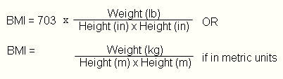 | Body Mass Index (BMI) Body mass index (BMI) is a measure for determining whether or not an adult is overweight based on a ratio between the weight and height. It was invented Adolphe Quetelet in the 1800s. It is also sometimes referred to as the Quetelet Index. BMI can be determined by the following formulas. Obesity is linked to heart disease, stroke, hypertension, diabetes, and respiratory problems. Therefore, an obese person should loss weight through diet and exercise to stay healthy and avoid medical problems. |